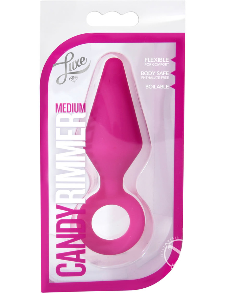 Your favorite itty-bitty plug now comes in multiple sizes! Medium Candy Rimmer is a great beginner`s anal toy. Safe and gentle, the satin finish silicone is deliciously smooth. The ring shaped base makes it secure and easy to position, and the conical design is comfortable to . Made of 100% silicone, it is hypoallergenic, phthalate and latex free, and can be boiled or frozen for sanitation or temperature play. Available in 3 luxurious color: fuchsia, purple, and indigo.