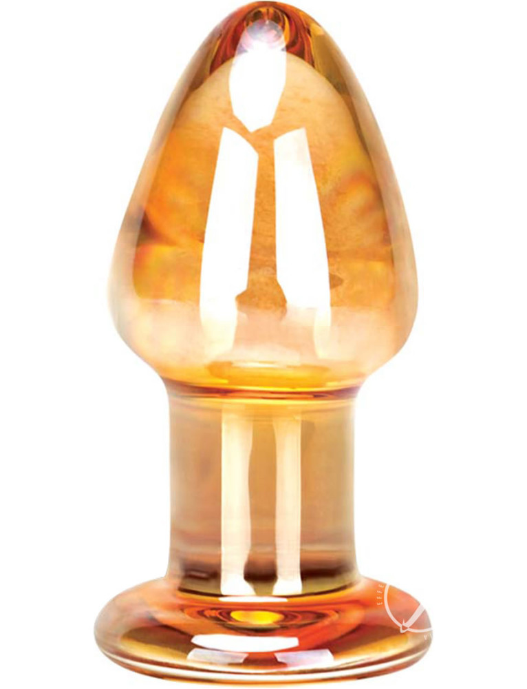 Classic butt plug in gorgeous artistically crafted glass. Wide base for your safety. Fracture-resistant and hypoallergenic, this toy can be easily cleaned. Retains heat and cold for increased stimulation. Compatible with all lubricants.