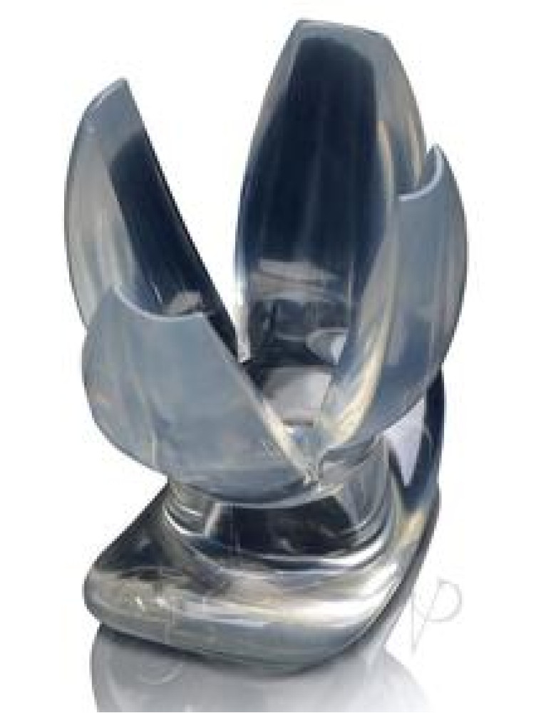 This intense anal claw will open you up like nothing else, giving your partner a whole new view of your ass! Pinch all four wedges together for a more manageable penetration. Once past your sphincter, this unique plug will expand, opening your insides up! The clear material and an opening at the base of the plug allows your partner to peer into your anal depths, or even fill you up with a dildo, an enema, or whatever your filthy minds come up with! The phthalate-free material is firm, yet flexible and will press against all the right spots inside you. Enjoy with silicone or water-based lube and clean with mild soap and warm water.Measurements:andnbsp; 4.5 inches in total length, 3.5 inches able.When closed, diameter measures 2.25 inches at widest point.When opened, diameter measures 4.25 inches. Center hole measure 1.5 inches in diameter. Material:andnbsp;TPE.Color:andnbsp;Clear.