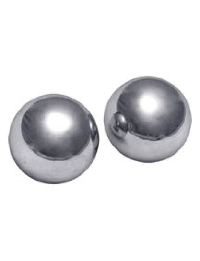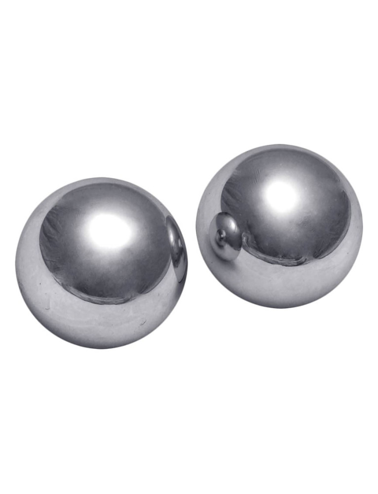 Introducing Titanica Orgasm Balls. They are copiously sized, supremely weighted, and daring you to try them out. These massive orgasm balls are ideal for intense sensation play, and for those who enjoy a nice, full feeling. Made of steelMeasurements: 2 inches in diameter.Material:andnbsp;SteelColor:andnbsp;Grey