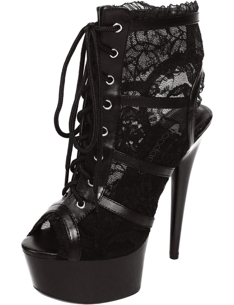 Lace up these stylish booties. Eight lace holes on each side allow for a number of patterns. And make sure your feet look great, as the black lace is seethrough.