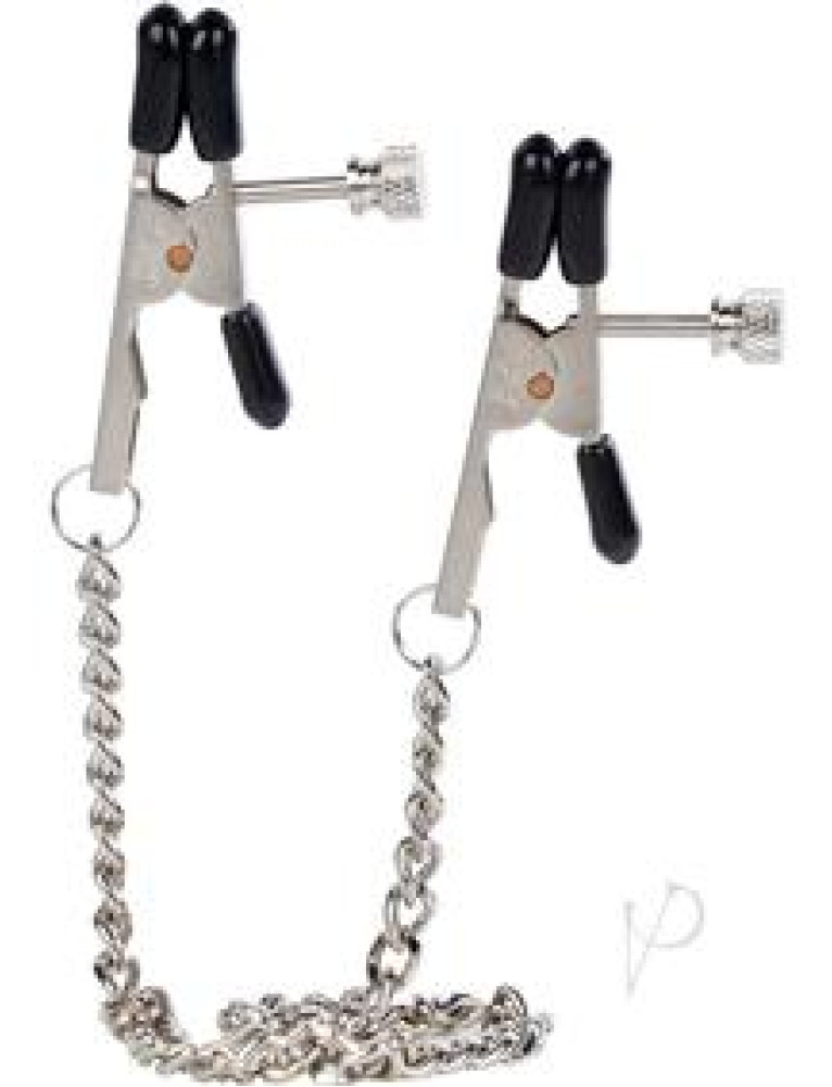 Quality, latex dipped, adjustable tension nipple jewelry. 2 clamps on a chain.