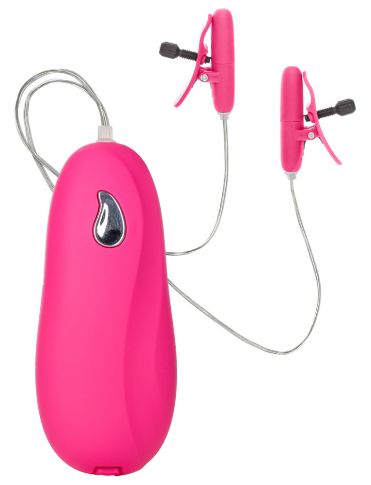 - Non-piercing, petite, adjustable nipple clamps that warm as they vibrate - Fully adjustable multi-use clamps - High intensity motor with 2-speed push-button control - Warms to an incredible 104F/40C - Silky smooth Satin Finish - ABS with PU Cote (controller, clamps) Nylon (screws) ABS with Silver Plating (button) Phthalate-Free PVC (cord) - Requires 2 AA Batteries Size 1.5 x 1/3.75cm x 2.5cm