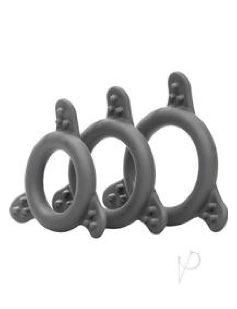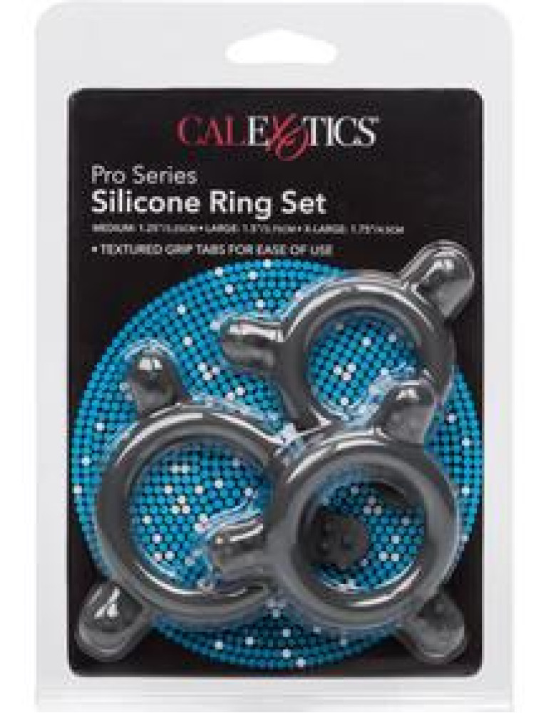 Every collection needs a good ring set. Created with ultra-durable, super-stretchy silicone, and designed with textured easy grip tabs for easy on and off action, this Pro Series set is the perfect fit. Three sizes to choose from make it perfect for any use you desire. Use one at a time, or use them all at once. The possibilities are endless.Slide in to support that lasts. The extra thick rings are sturdy enough for the most avid users. The superior quality silicone is stretchy enough for ultimate comfort, yet durable enough to last. This trifecta of performance will elevate your stature and extend your pleasure. When you`re ready to use or remove, just grab a hold of the easy grip tabs and easily slide where you need it.Stamina never felt so good. Enhance your assets with this multi-pack, and perform like a pro. Size 1.75 / 4.5cm (Extra Large Ring Diameter) 1.5 / 3.75cm (Large Ring Diameter) 1.25 / 3.25cm (Medium Ring Diameter)