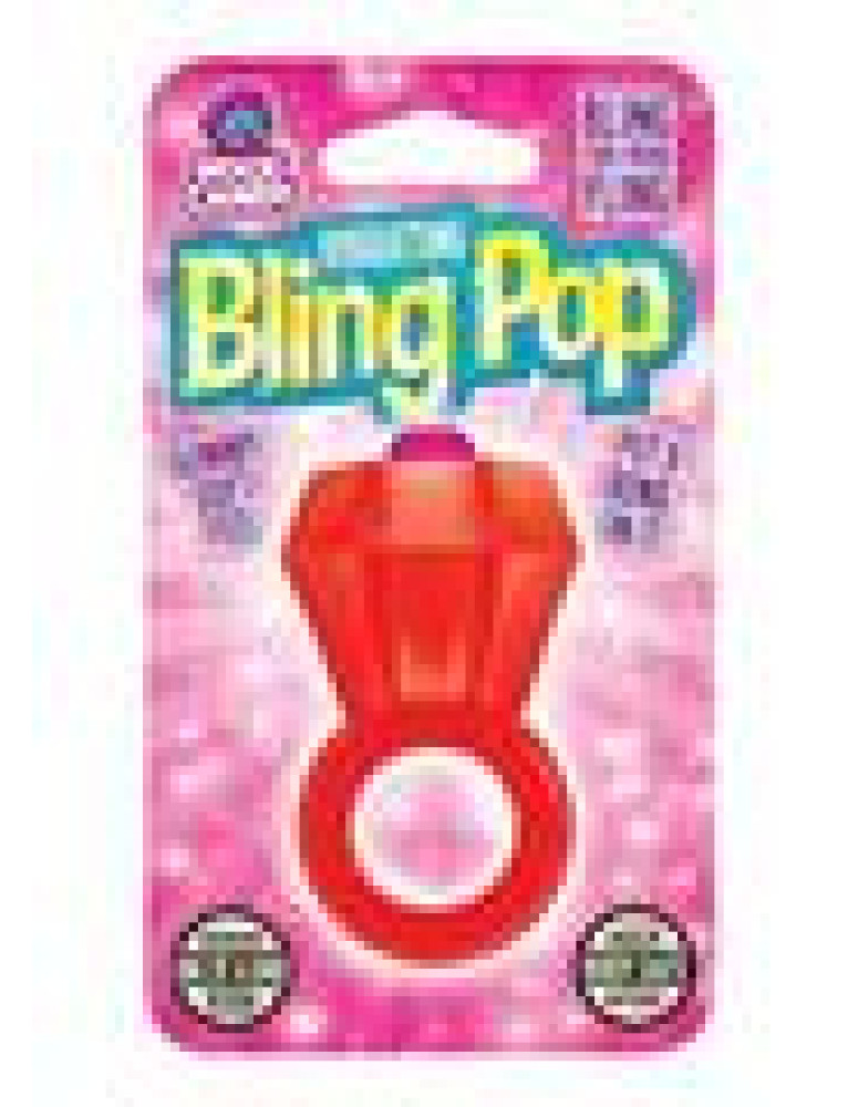Diamond-shaped vibrating erection ring Add a pop of bling to your fling! The one-of-a-kind Rock Candy Bling Pop is a true gem of a sexual enhancer, engineered to resemble a classic hard candy silhouette and colorful aesthetic, while incorporating power and comfort. Fit the supple ring down and around the base of the penis, or include the testicles-- and keep the diamond on top to treat your partner to blissful clitoral stimulation. Flip it upside down for external perineum stimulation, or double-loop it around the finger for solo or partner play! The high-powered single speed motor does double duty, serving up pleasure for two with the simple push of a button. Slide on it or grind on it...our ultra luxe diamond does what a good diamond does...performs best under pressure! - Unique, powerful vibrating ring enhances couple`s play - Density of gummy texture specially formulated for durability and functionality - Can be worn around the base of the penis, or the testicles and the penis - Super stretch ring provides a comfortable fit - Crafted from bodysafe TPE (thermoplastic elastomer) - Single speed motor provides 50+ minutes of power - Splashproof - Replaceable batteries included - One size fits most - Available in Blue, Pink, Purple and Red Dimensions: Diamond-shaped vibrator: 2.5 at widest, 1 tapered base Inner ring diameter: 1.75 Packaging dimensions 3.5 x 6