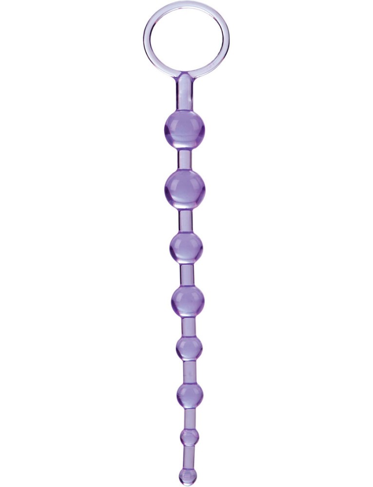 Sized for the beginner. Flexible, slim, graduated pleasure beads with an EZ retrieval ring. Phthalate-free PVC. 8.25 x .75/ 21 cm x 2 cm.