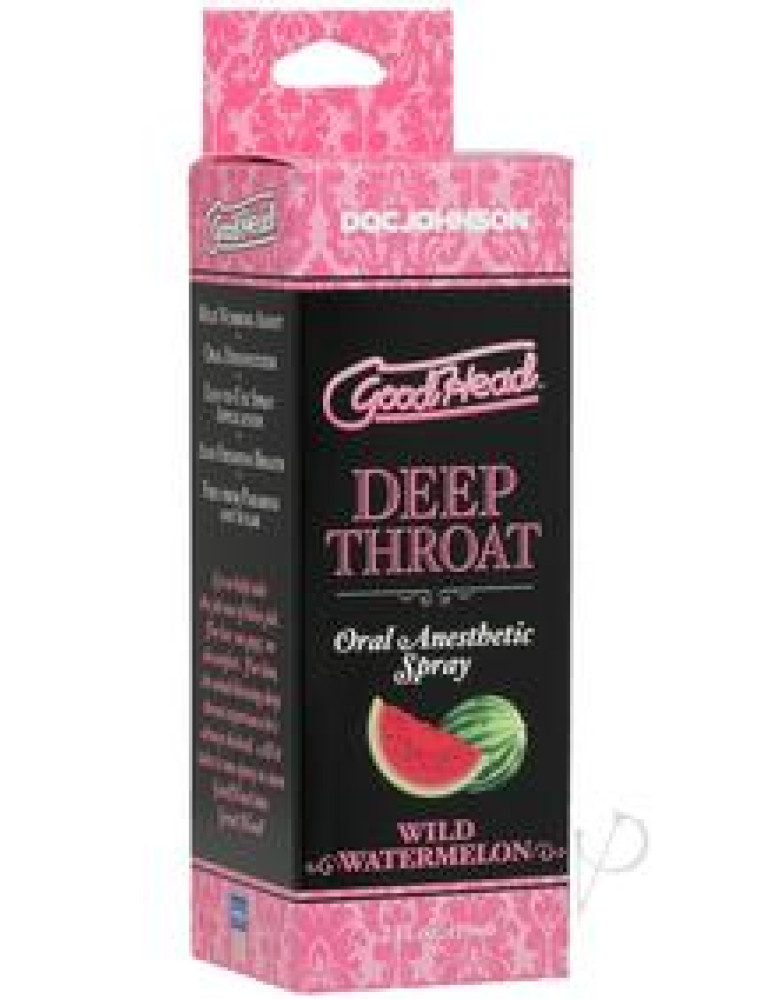 Go down easier. GoodHead Deep Throat Spray mildly numbs the back of the throat and suppresses the gag reflex to allow deep oral penetration without discomfort. This functional, flavorful spray is formulated for minimal medicinal taste and maximum effect in a variety of mouthwatering flavors. Delicious Throat Desensitizer Helps Minimize Gag Reflex Mild Numbing Agent Freshens Breath Easy-to-Use Spray Nozzle Proudly Made in America
