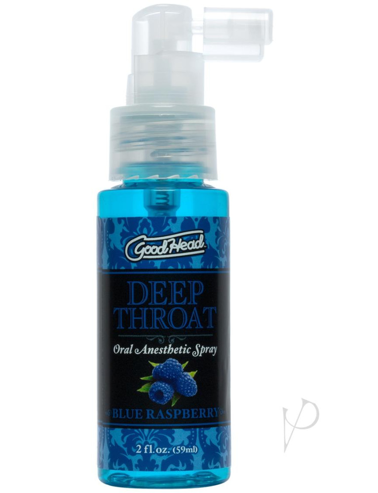 Go down easier. GoodHead Deep Throat Spray mildly numbs the back of the throat and suppresses the gag reflex to allow deep oral penetration without discomfort. This functional, flavorful spray is formulated for minimal medicinal taste and maximum effect in a variety of mouthwatering flavors. Delicious Throat Desensitizer Helps Minimize Gag Reflex Mild Numbing Agent Freshens Breath Easy-to-Use Spray Nozzle Proudly Made in America