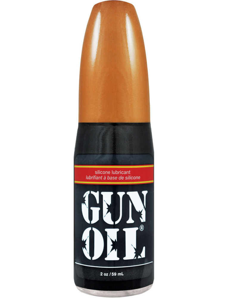 Our most popular formulation! This is the product that made GUN OILandreg;andnbsp;a household name. It is created from a proprietary, three-molecule silicone blend that is ultra-concentrated, incredibly slick, and water-resistant. GUN OILandreg;andnbsp;won`t break down or dry out. We added Vitamin E and Aloe Vera to minimize friction and protect and restore tissues. Hypoallergenic Water Resistant Fortified with Special Botanicals Safe for most non-porous toys* Unscented Unflavored Glycerin Free Paraben Free 2, 4 andamp; 8oz bottles have flip-top capsandnbsp; 16 andamp; 32oz bottles are sold with pumps included * Do not use with porous or silicone toys