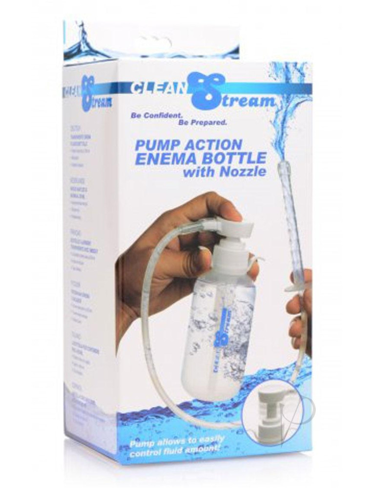 Deliver your own enema with ease and convenience! This anal douche kit includes a bottle, pump, and nozzle so that you have everything you need to clean out with more control than an enema bulb, and less hassle than a shower or gravity system. The bottle holds up to 300 mL of fluid, with measurement markers indicated on the side for accuracy. The pump includes syringe style handles so that you can easily transfer the fluid through the long, flexible tube with one just hand. Made of premium, non-porous silicone, the petite nozzle is smooth and bulbed for comfort. Holes around the side of the tip provide more effective cleaning of your inner walls. Not compatible with silicone lubricants. Clean with mild soap and warm water after use.Measurements: Nozzle is 4.5 inches in length, .5 inches in diameter.Bottle volume is 300 mL. 7.5 inches in height with pump attached, 2.5 inches in diameter.Hose is 17.5 inches in length. Material:Â Silicone, Polyethylene.Color:Â Clear.Note:Â Includes bottle, pump, hose, and nozzle.