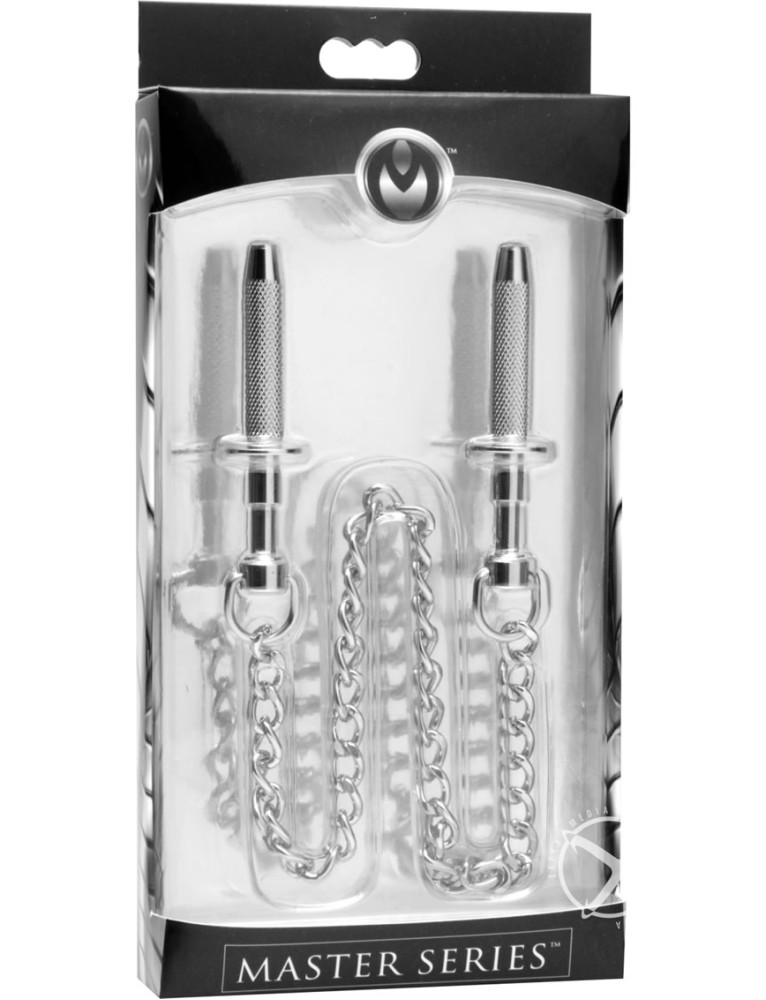 These exciting steel clamps will grasp your skin with 4 slim fingers, creating a serious pinch and an intense sting that will have you curling your toes in ecstasy. Pressing the end of the clamp extends the thin claws. Just place them over the skin you desire to stimulate, and release. The claws are drawn back into the clamp, grasping the flesh and holding the clamp in place. A unique sensation for true pain and sensation play aficionados.Measurements: 2.85 inches in length, 0.3 inches max opening diameter.Material:andnbsp;Stainless SteelColor:andnbsp;GreyNote:andnbsp;Contains (2) clamps.