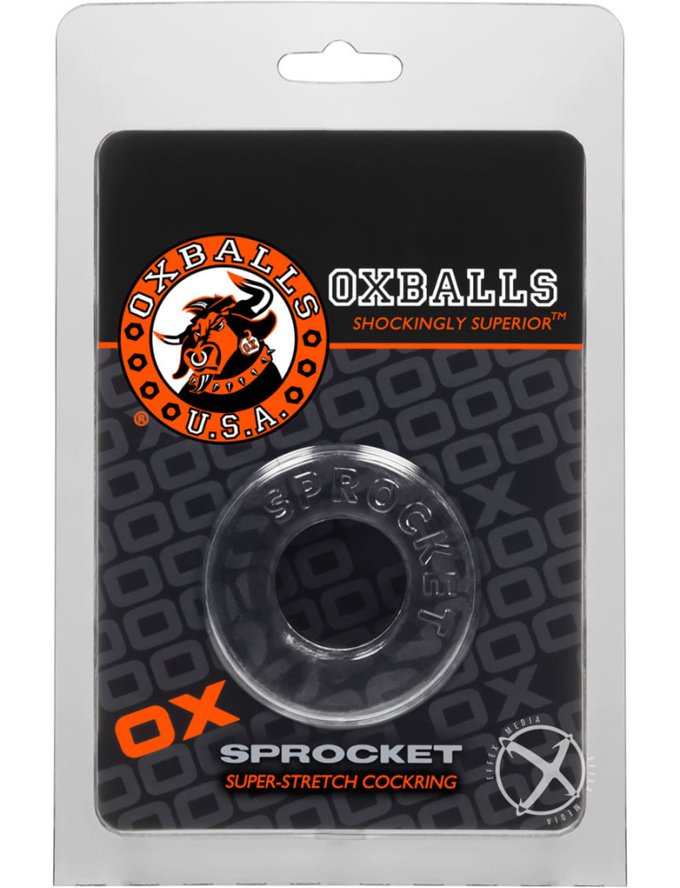 SPROCKET Cock Ring is made from all new material, it feels blubbery...squishy...but elastic enough to squeeze your junk and keep you super-hard-it will not dig into your flesh like other Cock Rings.Ox Balls Atomic JOCK is a new brand of toys, they keep thing simple but effective...they tested this Cock Ring on everyone they could find...porn-boys that shoot for Titan, Go-Go boys here in LA...wet underwear contests...and of course a lot of one-on-one product testing...The result is the perfect Cock Ring, it`s strong and super stretchy, rubbery enough it doesn`t choke your balls till blue...it just fits...after our last photo-shoot, the guys that wore this Cock Ring grabbed handfuls for their personal use, and knowing what sluts they are I`m sure a lot of you have seen `em in use up close already...Features - SOFLEX TPR - Lube safe: water-base, oil base, water/silicone hybrid, silicone lubes - Cleaning: detergent and warm water after use.Size Total Height: 3/4/2cm Total Outside Diameter: 2.8/7cm