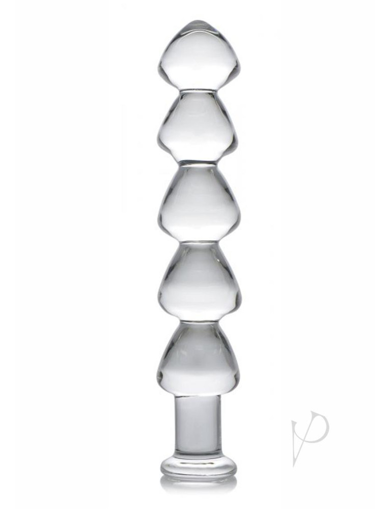These glass anal beads deliver a greater sense of fullness with their weight and hardness. Made of shatter-resistant glass, each of the 5 links on the shaft is smooth and tapered for a comfortable ion. How much can you fit before you explode with ecstasy? Ideal for temperature play, you can heat or cool this anal dildo by submerging it in hot or cold water before use. This non-porous material is also non-allergenic and body safe. Easily clean and sterilize with mild soap and warm water. Compatible with all types of lubricant.Measurements: 11 inches in total length, 10.5 inches able, 2 inches in diameter.Material:Â Borosilicate GlassColor:Â Clear