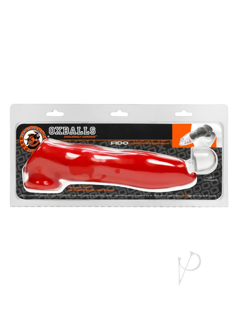 Take your pup-play to the next level with the FIDO cocksheath from OXBALLS. FIDO is made from our super-soft, stretchy FLEXtpr so it grips and melds to you like a rubbery second skin. Each sheath comes with a bullet that`s designed to fit into the inner chamber for a customizable fit and feel. The built-in COCKSLING at the base keeps FIDO firmly in place, even when you`re pounding a puppy. FIDO is a fat fleshy cocksheath that looks just like a real beastly cock, this fucker even has a thick knot in the middle...FIDO is made from our signature FLEXtpr and is designed to mold to your dick like a second skin, transforming it into the ultimate pup-pucker stuffer. Coat the inside with lube, pop your meat in the sheath, pull your nuts through the sling and you`re ready to pound a puppy! FIDO`s soft material and hollow inner chamber create a sloppy suckin` sensation that works your cock while you work over his greased up hungry hole. (For some serious grip on your meat we recommend burping out any excess air by tightly squeezing the length of FIDO down to the base). If you want a tighter fit or more suction grip, FIDO comes with a nub that is designed to lock into the hollow chamber to shorten the inner length.The built in dick-sling and suction grip keeps your doggy dong plumped and FIDO melded to your meat no matter how hard you`re humpin` his furry ass.FIDO feels fuckin` hot swingin` between your legs on all fours or sinkin` balls deep up some bitch in heat. Wear one to your next mosh and watch the drooling commence... MATERIAL AND CARE INSTRUCTIONS:FLEXtpr safe, strong, non-toxic and phthalate free.LUBE SAFE: Water-based or silicone.CARE: Wash after use in warm soapy water, air dry. Store toys separately: we recommend breathable cloth pouches or cotton socks.