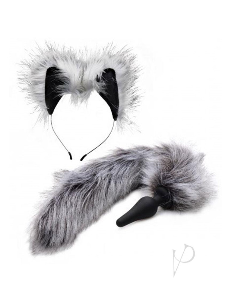 You will both be howling in pleasure when you get wild with these exciting accessories. Transform into a sexy beast for your partner with this flirtatious set of ears and a tail plug. The ultra soft and fluffy faux fur is so irresistible that your lover will not be able to keep their hands off of you. The tapered plug is smooth and narrow for an easy and comfortable ion. Made of premium silicone, it is non-porous and phthalate-free, but not compatible with silicone lubricants. The adorable headband with matching ears will complete your ensemble. Stalk your prey or crawl around like the perfect pet when you turn into a gorgeous grey wolf!Measurements: 23.5 inches in total length.Tail is 19 inches in length.Plug is 4.5 inches in total length, 4 inches able length, and 1.75 inches at widest able diameter. Material:Â Silicone, Faux Fur, MetalColor:Â GreyNote:Â Includes tail and ears. Clean with soap and water. Blow dry.