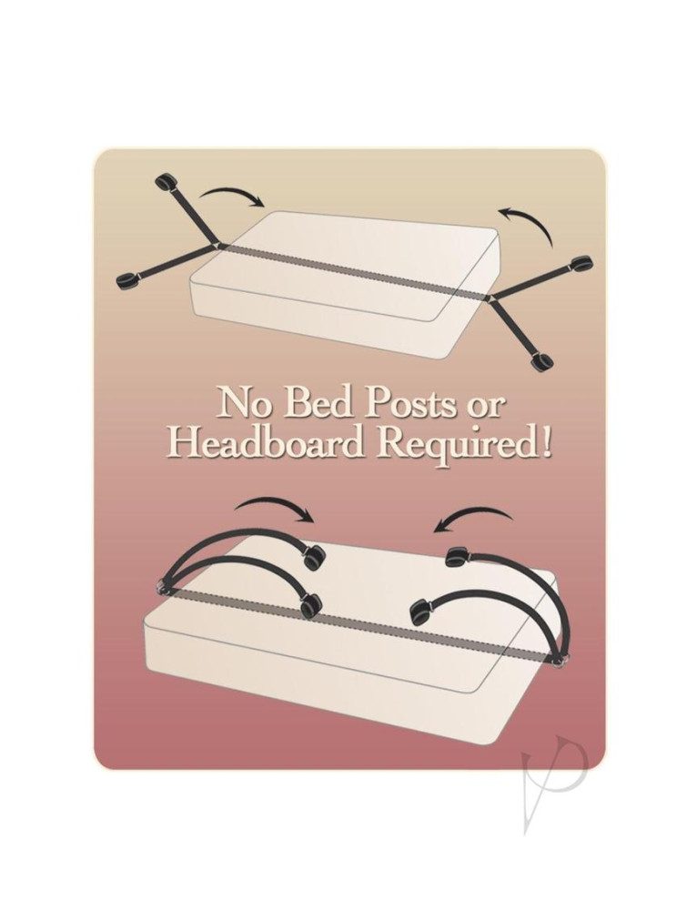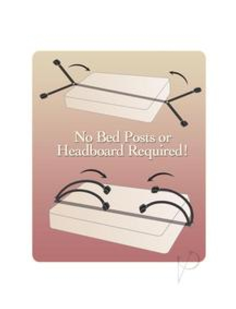 Transform your bed into a passion playground with these under-the-mattress bed bindings. Experience the thrill of bondage and role play. This kit contains: 4 Nylon tethers, 2 Velvet hand cuffs, and 2 Velvet leg cuffs. Explore your deepest fetish fantasies!