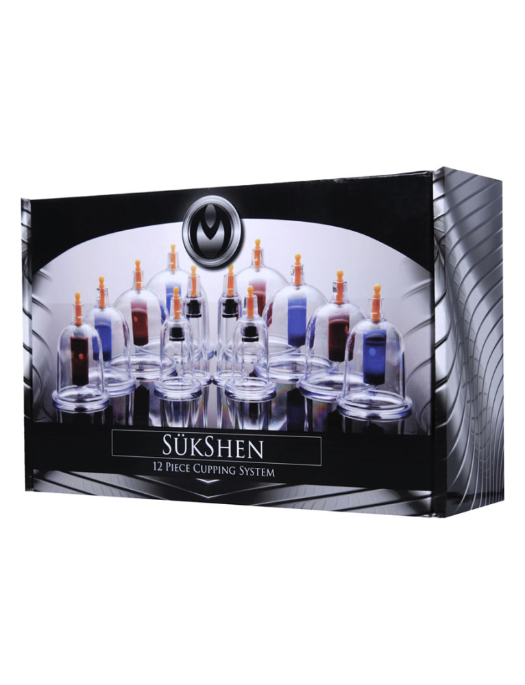 This 12 piece cupping set is a unique way to relieve sore and aching muscles, explore erotic massage, or use with BDSM play. The cupping method stems from traditional Chinese medicine, but its effects can be enjoyed in a variety of ways. Simply place one or more cups directly onto the skin, attach the tubing to the top opening of the cup and to the hand-held pump, and then pull the pump trigger to create suction. Lubricate the skin first in order to slide the cups around for different sensations. The tubing may be detached and the cups will still remain attaching on the skin by the vacuum. Acu-Points centered within the cups provide additional stimulation against the skin. Whether you want to spice things up or experience something new, this Cupping Set is an exciting unconventional toy for your collection!Measurements: Set includes two cups of each of the following inside diameters: 0.625, 1, 1.25, 1.625, 2, and 2.25 inches.Material:andnbsp;Cups are ABS plastic.Color:andnbsp;Cups are clear.Note:andnbsp;Read instructions before use.