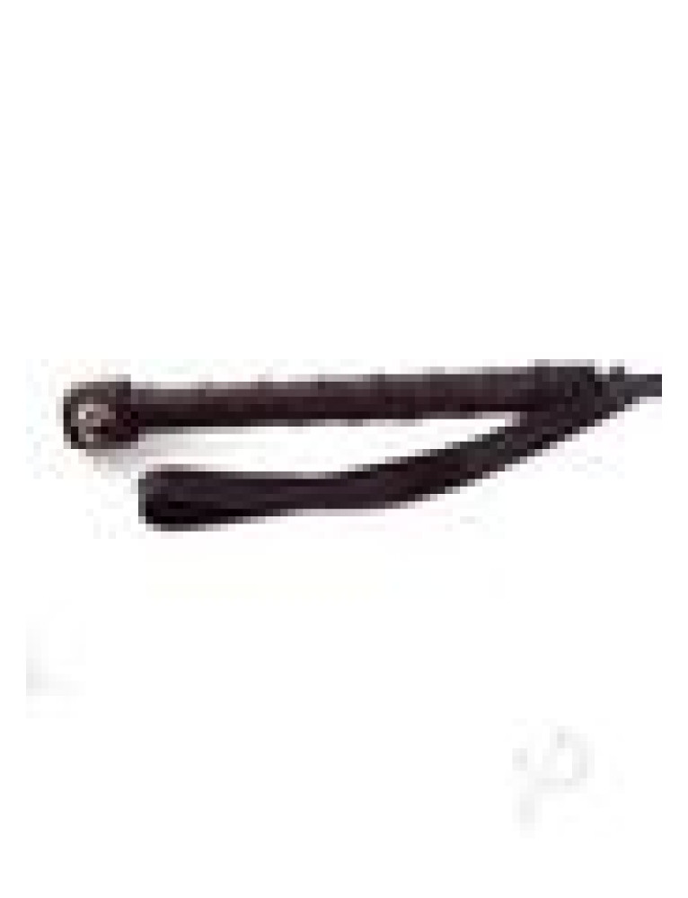 Bondage crop with a hand shaped spanking flap. Has a leather wrapped handle and hand braided shaft.