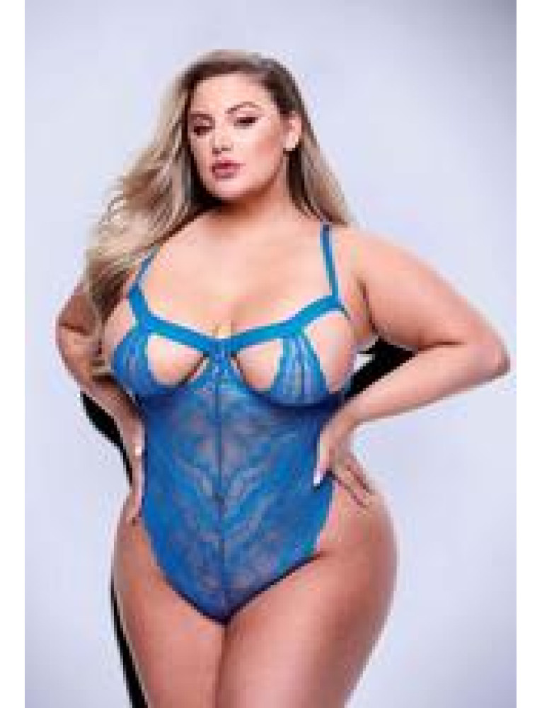 Lacy, strappy and peekaboo detailing - all things to love with Baci`s newest teddy! Available in midnight black or cerulean blue, traditional this teddy isn`t! Designed in a stunning and intricate lace, this sheer look is sure to become a favorite! Cut high at the hips with a cheeky back, open cups pair with delicate lace detailing to show off your favorite assets while keeping just a bit of the mystery alive!