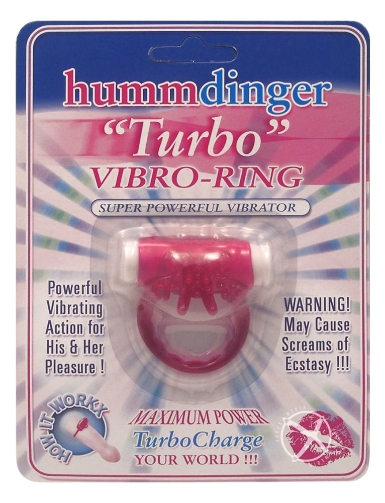 When you strap on the HUMM DINGER TURBO, get ready for an unimaginable sexual experience! The HUMM DINGER TURBO, will undoubtably make your partner scream and beg for more! Being the first Vibrating Cock Ring in the world...gives Humm Dinger the edge...when it comes to strategic design...and product knowledge Innovation! With our vibrating ring, you can experience up to 90+ minutes of erotic vibrations, longer and firmer erections, and intense orgasms! HUMM DINGER TURBO is waterproof and offers intense Vibrating pleasure, at the flick of an on/off switch! 2 LR44 Batteries Included Features: Prolonged Vibrations - 40+ minutes Strongest Vibrations Satisfying Ticklers For Her Performance Knobs for Him Secure and Simple On/Off Switch Snug Yet Gentle Gel Ring
