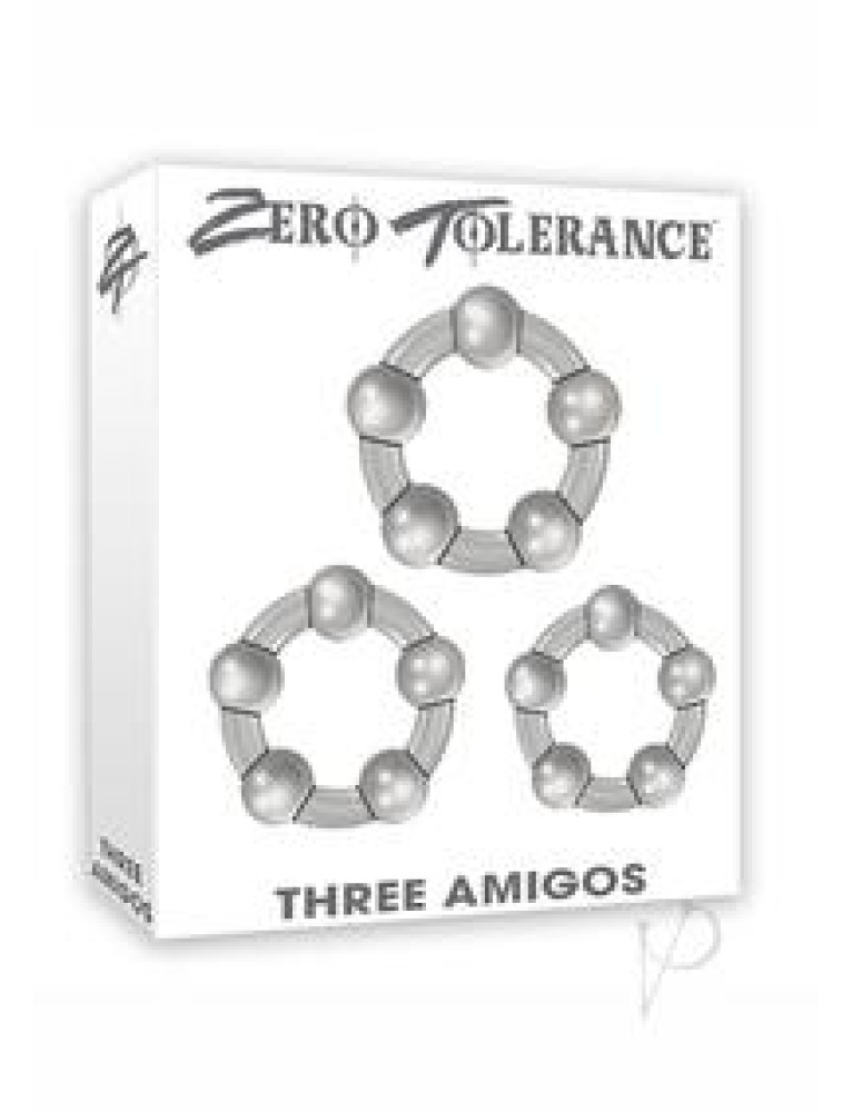 Three rings in one set means you can experiment with finding the perfect fit, or use the size that suits your mood - mellow or more sensually daring! Slide the ring to the base of the shaft to experience harder, longer lasting erections and let the pleasure beads gently massage you for added erotic stimulation. Clean with Zero Tolerance toy cleaner and a warm water rinse. 3 beaded cock rings for longer lasting, harder erections Beads in each ring add unique pleasure Made from stretchy and pliable TPE Chic translucent smoke color Dimensions: Small - Length: 1.23 in., Depth: .34 in., Width: 1.23 in. Medium - Length: 1.33 in., Depth: .34 in., Width: 1.33 in. Large - Length: 1.48 in., Depth: .37 in., Width: 1.48 in.