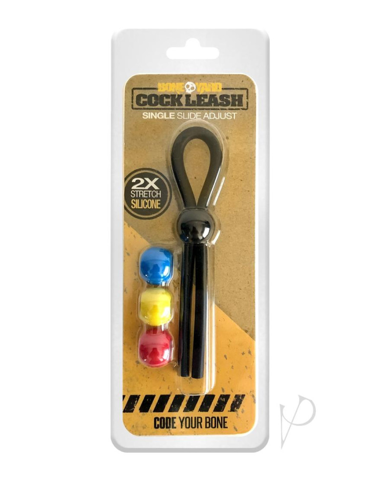 Fully Adjustable Silicone Cording Hanky Code Color ABS Latches The Boneyard Cock Leash Double is the perfect cock ring, fully adjustable and easy to put on. The leash is 100% medical grade silicone. The 4 Hanky Coded ABS latches allow for endless adjustment possibilities, and the added hint of your fetish. to the lucky guy that gets your clothes off. Black: BDSMYellow: WatersportsRed: FistingBlue: Likes to Fuck The beads also let you loosen of tighten the ring without the hassle of changing to a different ring and losing your stiffy. The Cock Leash Double fits around your shaft, your balls, or both. Care Instructions:This product is safe with all lubricants. Wash thoroughly with mild soap and warm water or toy cleaner. Pat dry and allow product to completely air dry. Store separately. andnbsp;