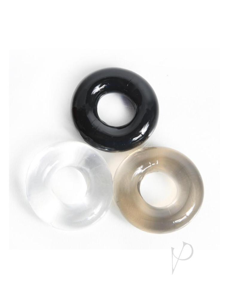 Extra thick and comfortable the Triple Play Cock Ring contains the 3 perfect size donut rings. Each kit contains a black, clear, and smoke colored ring, intended to be worn around cock, balls or both. They are made of super strong and stretchy TPE and are phthalate free. The Triple Play Cock Ring are soft, stretchy, easy to get on, and help you keep a firm and hard erection. Extra Thick and Comfortable Strong and Stretchy TPE Multi - Color 3 Pack No-Roll Design Thick Girth for Powerful Erection Dimensions: Inner Diameter .7 in. Outer Diameter 1.75 in. Care Instructions - This product is safe with all lubricants. Wash thoroughly with mild soap and warm water or toy cleaner. Pat dry and allow product to completely air dry. Store separately.