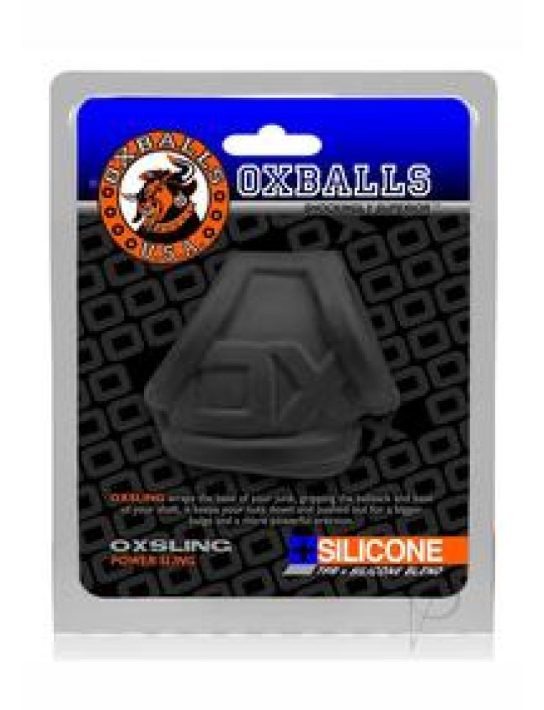 OXSLING is everything you love about our original Cock Sling designs but it`s made from our brand new PLUS+SILICONE composition.Our PLUS+SILICONE combines the strength and stretch of TPR with the warmth and softness of smooth silicone; guarantee your junk has never felt anything like it.Each opening on OXSLING is reinforced with a thick ring that grips your meat and pushes your nuts down and away from your body.The super soft material and multi-ring design create the sensation of a hand gently squeezing your shaft and sack.OXSLING`s versatile shape can be worn multiple ways for a different fit and feel. Wear the smaller ring facing downward for a tighter fit on your ballbag or flip it towards your body for more pressure on your cock or shaft.The eye-catching embossed OX lettering lets you rep your favorite toy brand while showin` off your best assetsDimensions:Width: 2 in.Height: 2.25 in.Main hole circumference: 4 in.Shaft hole circumference: 3.5 in.Ball hole circumference: 4.25 in.