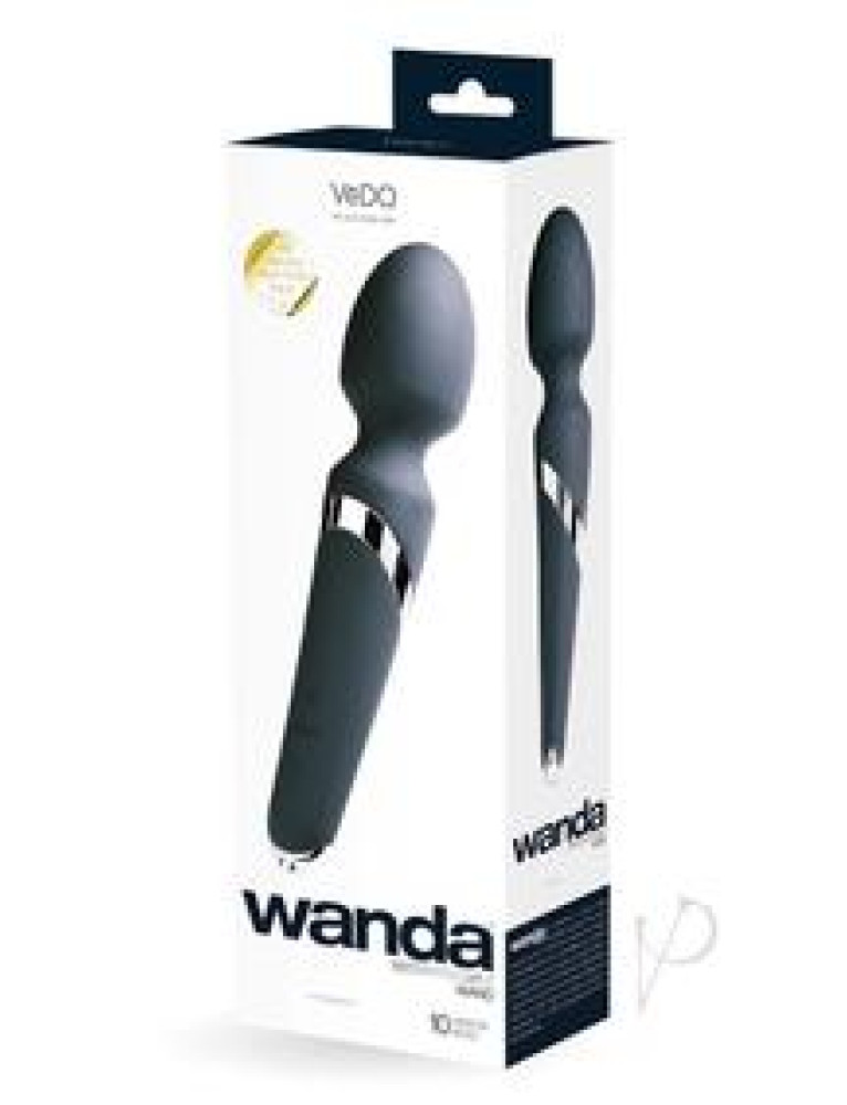 Wanda rechargeable wand may be the most powerful rechargeable wand on the market, boasting 10 mind blowing vibration modes. The thin handle fits perfectly in your hand which allows the flexible head to glide effortlessly over your body wherever your erogenous zones crave pleasure or you need tension relief. Made from silky smooth silicone, wanda is not only sleek and sexy, but whisper quiet. Your bath, shower or hot tub time will never be the same because your new partner is completely water submersible. PRODUCT FEATURES Extremely powerful motor Rechargeable (USB cable included) 10 vibration modes One button easy control Extremely quiet Velvety smooth silicone Submersible Running time: 1 hour Dimensions: Length: 9.44 in. Max Diameter: 2.16 in.
