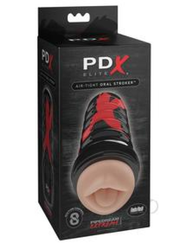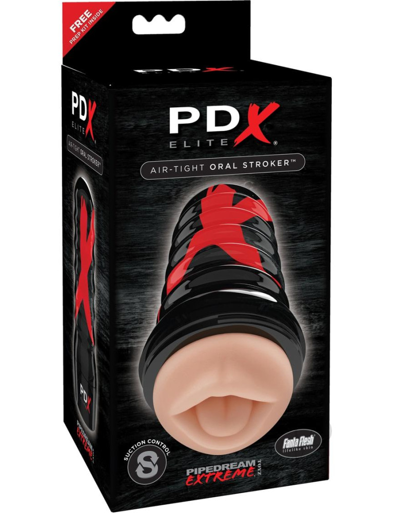 Air tight suction ensures that tip in or balls deep, the PDX Elite Air-Tight Oral Stroker will give you the best oral sex experience of your life!With a sturdy, ribbed exterior case for a solid grip, the PDX Elite Air-Tight Oral Stroker creates a powerful suction that milks every inch of your cock. A super-smooth, lifelike Fanta Flesh interior sleeve lined with massaging ribs, bumps and pleasing textures will fulfill your oral sex fantasies with every thrust. For a variety of stimulating sensations, simply remove the suction control sticker and use your thumb to adjust levels manually. The Fanta Flesh interior sleeve is also removable for handheld pleasure.
