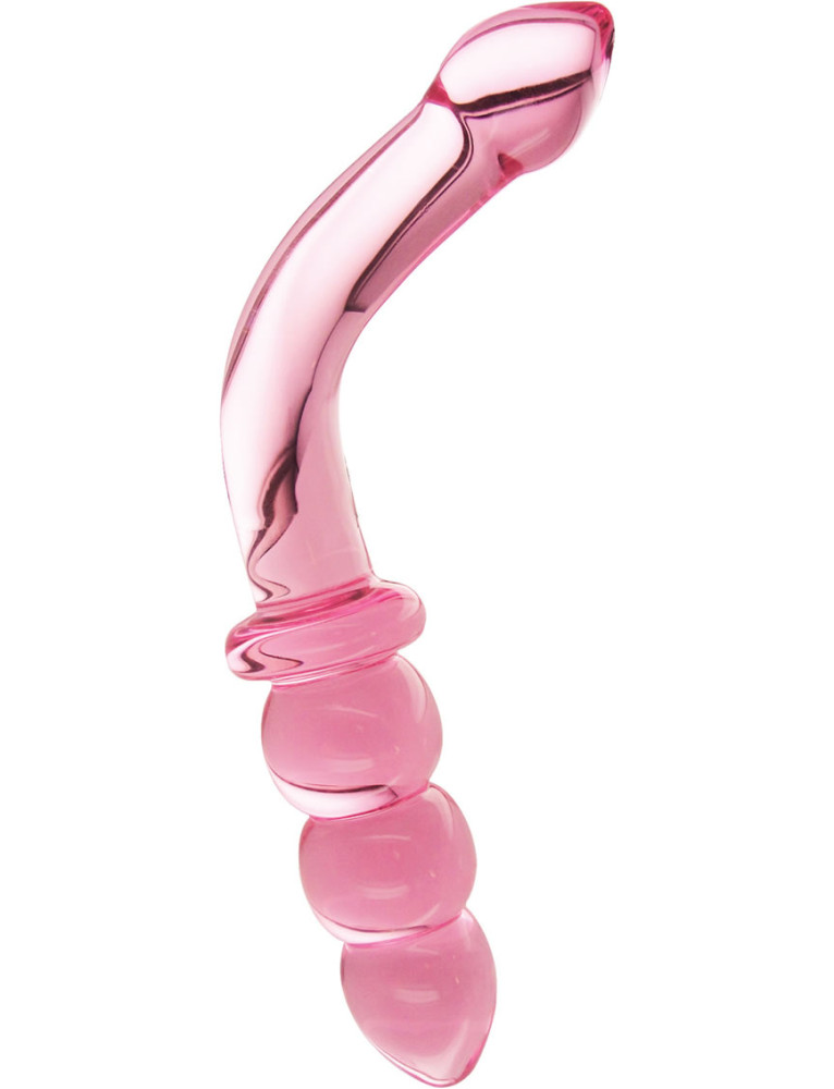 Both versatile and alluring, Hamsa offers two contrasting shaped tips for increased g-spot and p-spot stimulation. Hamsa is an excellent choice for those that have trouble choosing between the many sensual options available in glass toys. The two-way shaft is serenely smooth and sleek, and this piece is perfectly curved to allow you to target your chosen areas with little or no friction. Size Total Length: 7.5 Insertable Length: 4 smooth end, 3 beaded tip Max Insertable Diameter: 1.25