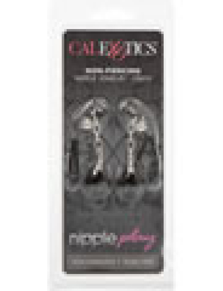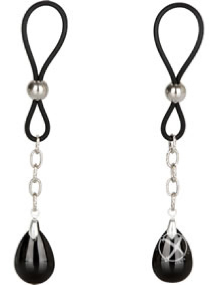 - Includes 2 fully adjustable nipple adornments - Soft and comfortable cinch design - Non-piercing, non-tarnishing, nickel-free - Nickel-Free Iron (chain, beads) - Silicone (loops) - Crystal (jewels) Size 2.25/5.75 cm (each loop) 4.5/11.5 cm (overall length)