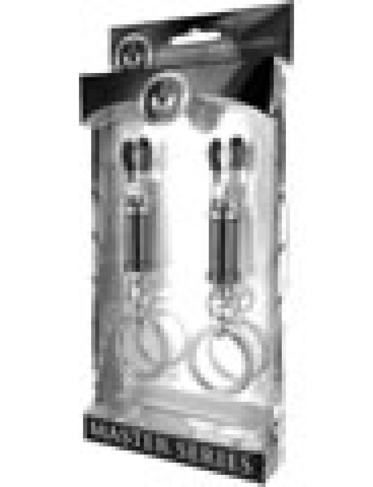 The Amulet D-Vice Adjustable Nipple Clamp Set is an effective training tool in the art of endurance and sensation play. These exquisite clamps come equipped with an adjustable barrel so the wearer can graduate to a tighter fit. The TPR coated clips are designed to accommodate the natural curvature of the nipple. Use your imagination, this devious set includes a convenient O ring that can be weighted, laced, etc. It is your domain...you decide!Measurements: Can open up to approx. 0.75 inches wide, closes completely.Material:andnbsp;Heavy Duty Brass with TPR Coated TipsColor:andnbsp;Silver and Black