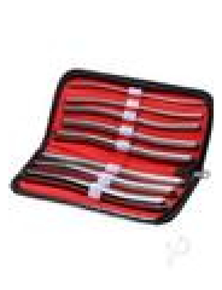 The Hegar Sound Set is a urethral dilator sound set with a full set of 8 sounds. Each sound has a different sized end, thus the set offers sixteen sizes, ranging from 3 to 19 millimeters in diameter. The purpose of this sound set is to gradually and gently enlarge the urethra, when ed into the urethra for such dilation. The sounds can also be used in other areas other than the urethra, such as anally, vaginally or prostate. Each set comes in a zippered velvet-lined case for storage between each orgasmic session.Measurements: Ranges from 3 to 19 millimeters in diameterMaterial: Chrome Plated BrassColor: GreyNote: Includes 8 sounds.