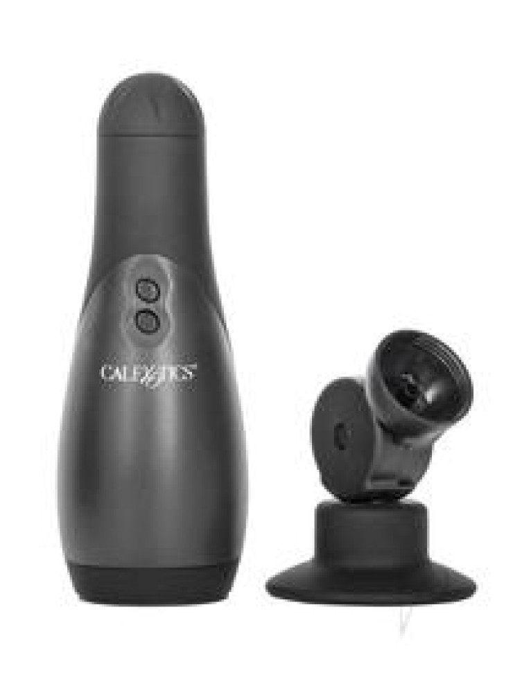 - Totally self-contained power stroker with removable suction cup base- Vibrating pleasure stroker with deep throat action- Sleeve ergonomically shaped for absolute form and function- 30 incredible functions of vibration, pulsation and escalation- Easy push button control- Optional multi-position hands-free suction cup swivel mount included- 3.5 x 2.25/9 cm x 5.75 cm (chamber)- 8.5 x 3/21.5 cm x 7.5 cm (overall)- TPR (sleeve) ABS (button) ABS with PU Cote (case)- 4 AA