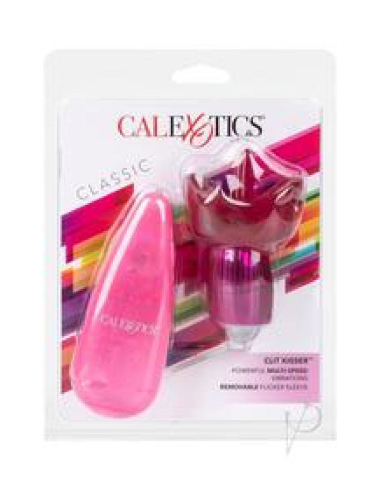 The Clit Kisser flickering bullet packs intense multi-speed vibrations into a teasing tongue-shaped sleeve. The oral-like stimulator has an easy-touch speed dial and egg-shaped bullet vibe to deliver thrilling sensation. Snuggle close to this teasing tongue massager and turn up the heat in the bedroom. Expect more foreplay as a couple or indulge in a playful solo session. The powerful vibration bullet can be used independently from the tickler attachment for pinpoint pleasure. Dimensions: Arouser: 3.5 x 2.25 in. Stimulator: 2 x 1 in. Package: 1.75 x 6 x 8 in.