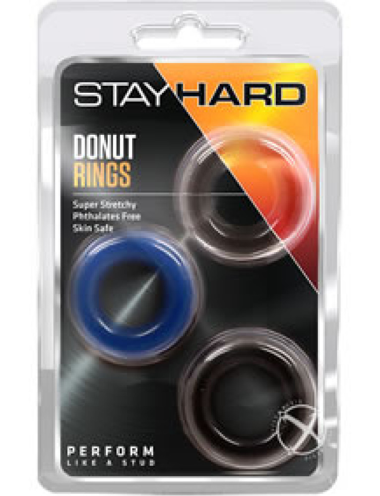 Play hard! Enjoy our bestselling Stay Hard Donut Cock Ring feels good, looks sexy. Get instant results. Longer, harder erections. Increase stamina. Give you and your partner longer and more intense orgasms. Add size, girth. lengthen your dick. Use for your penis, stretch 1 over the base of your testicles, or stack 2 or 3 on your penis or your balls. Stretchy, easy to put on, super comfortable, and reusable. Made of soft premium TPE, it`s phthalate free and simple to clean. Measures .7 Thick x 1.4 Outer Width x .7 Inner Width. We Care About Your Health And Wellness And Are Mindful Of What We Provide For Your Body. Lab Tested and Certified To Contain No Phthalates, BPA Or Other Harmful Substances. Silicone, Water Based and Hybrid Lube SafeENHANCE - Retains Blood Flow In Your Penis To Make Your Dick Longer, Harder, Bigger. Enjoy Longer Lasting Erections And More Intense OrgasmsPLEASE YOUR PARTNER - Increase Stamina And Armed With A Harder Dick You Will Deliver Mind Blowing Orgasms To You And Your PartnerBIGGER IS BETTER - With Restricted Out Flow Of Blood Your Penis Will Be Engorged. Lengthen Your Rod. Add Girth. Fulfill Your Partner`s Darkest Desires. Become A StudVERSATILE - Wear All Three at Once, Stacked. Wrap Behind Your Scrotum To Delay Ejaculation Or Just To Experience The Pleasure Of A Good StretchPEACE OF MIND - Responsibly Made By Blush. We Care About Your Health And Wellness And Are Mindful Of What We Provide For Your Body. Lab Tested and Certified To Contain No Phthalates, BPA Or Other Harmful Substances. Silicone, Water Based and Hybrid Lube Safe