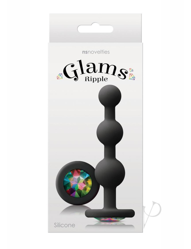 Glams Ripple is pure excitement, pleasure and a visual treat. Graduating balls and rainbow gems will delight and seduce your innermost fantasies. Glams Ripple silicone plug is available in assorted colors and is suitable with all lubricants. Product Dimensions: 4.49 x 1.65 x 1.65 in. Package Dimensions: 7.28 x 3.19 x 2.01 in. Insertable Dimensions: 3.54 x 1.06 in.