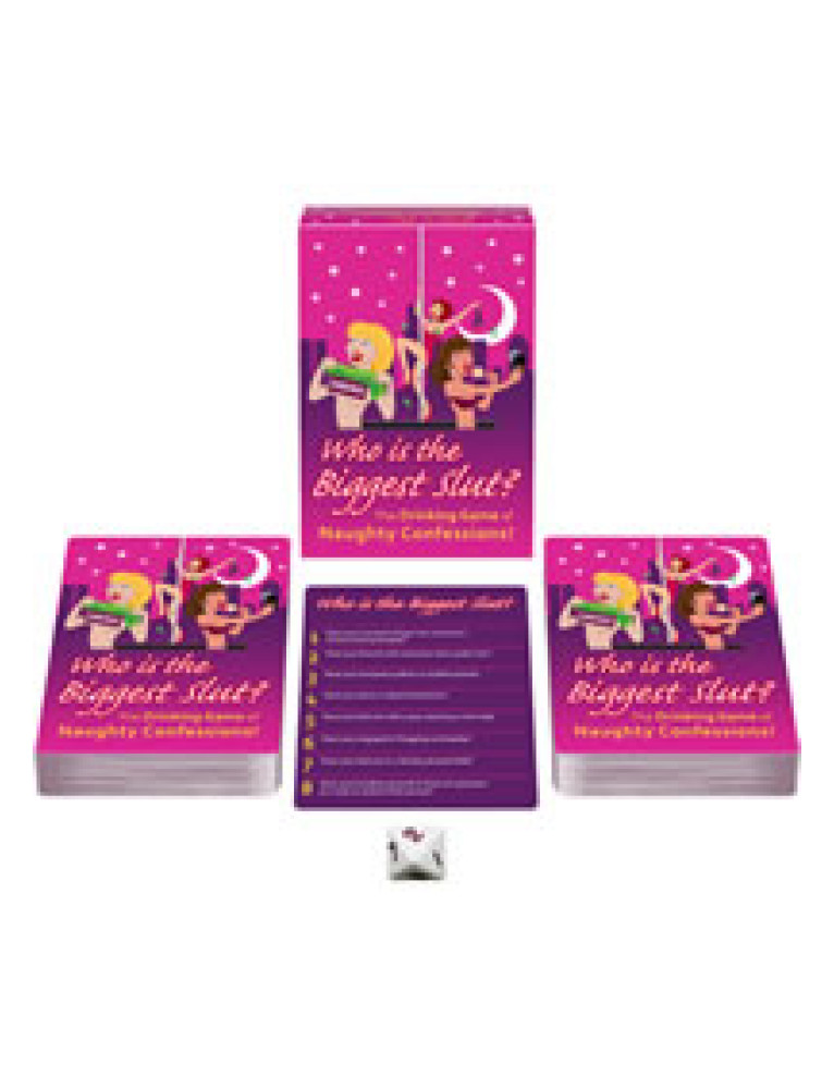 The hilarious drinking game of naughty confessions! Players answer over 550 questions about slutty things they`ve done in order to determine which one of them is the BIGGEST SLUT!