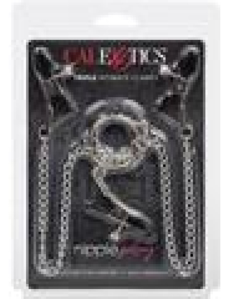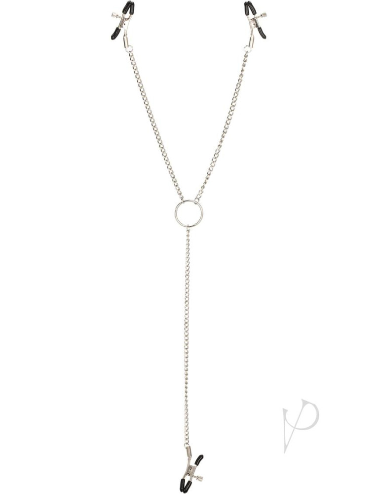 Includes 3 fully adjustable multi-use clamps Soft, comfortable pads Sturdy high-quality dual chain for added sensuality Non-tarnishing, nickel-free Nickel-Free Iron (chains, clamps) Phthalate-Free PVC (pads) 2.25 x 1/5.75 cm x 2.5 cm (each clamp) 26.5/67.25 cm (overall length)