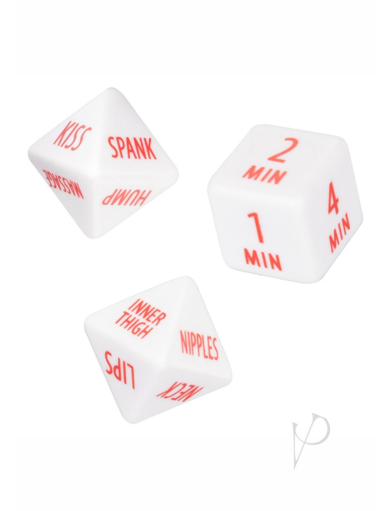 Fun, pleasurable and on the edge! Roll the dice to determine body part, activity and length of playtime 3 dice included Package Dimensions: 5 x 3.5 x 0.5 in.