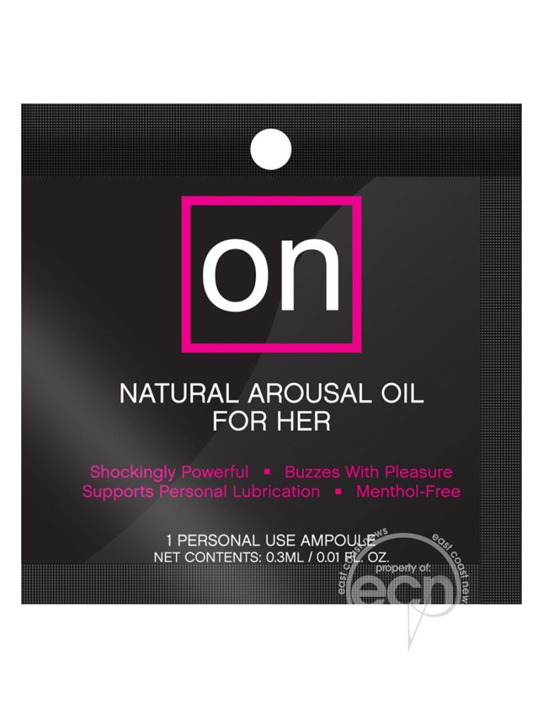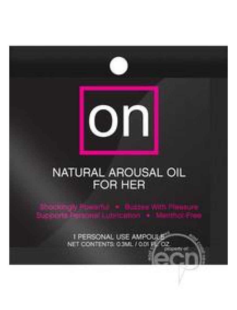 75 foils containing a .3ml/.01 fluid oz. personal use ampoule.Natural arousal oil for her. A couple drops in the morning and you`ll be thinking about tonight all day. Shockingly powerful and buzzing with pleasure! The formula supports personal lubrication.