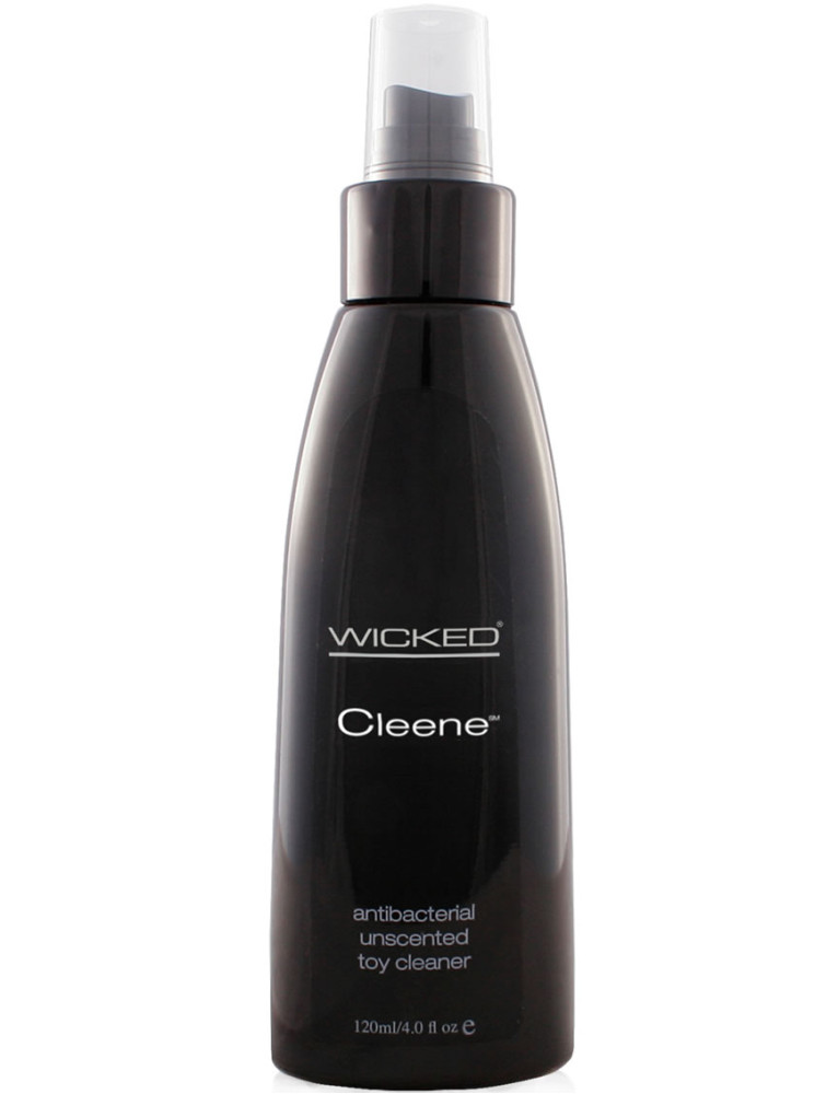 Keep your toys safe and your intimate areas healthy with Wicked Cleene Antibacterial Toy Cleaner. Enhanced with natural lavender and Olive Leaf Extracts to boost anti-bacterial effectiveness, Fragrance-Free Cleene is convenient and easy to use. Alcohol-Free Triclosan-Free Paraben-Free Enhanced with Olive Leaf Extract Safe for all toys Vegan No Animal by-products or testing Directions:Hold 4-6 inches from the item to be cleaned. Spray Cleene to cover the entire surface. Wait 1 minute before wiping dry with a soft cloth. Rinse with water or wipe with a damp cloth and allow the toy to dry before storage. Ingredients:Benzalkonium Chloride (0.10%) Water, Sodium C14-16 Olefin Sulfonate, Disodium Lauroamphodiacetate, Sodium Trideceth Sulfate, Cocamidopropyl Betaine, Propylene Glycol, Lavandula Angustifolia (Lavender) Flower Extract, Olea Europaea (Olive) Leaf Extract, Thymus Vulgaris (Thyme) Extract, Tetrasodium EDTA, Citric Acid, Methylchloroisothiazolinone, Methylisothiazolinone