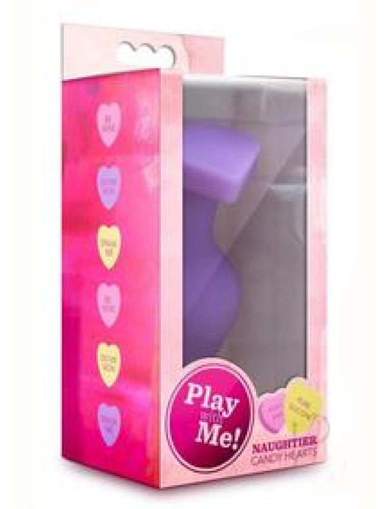 Sex should be fun, so we created Naughty Candy Hearts.These cute little plugs are the perfect gift for your lighthearted lover.Made from soft and flexible silicone with a safe heart-shaped base.With their smooth satin finish, they have a buttery soft touch that becomes slick with lube.Made of 100% silicone, they are hypoallergenic, nonporous, and boilable.Say what you really mean with 3 messages ranging from sweet to saucy:Pink: Be Mine. Purple: Do me Now. Yellow: Spank Me.The words are molded into the product, so they won`t wear off with time.It`s the best way to express yourself! Their size also makes them perfect for anal beginners. Dimensions:Length: 3.5 in.Insertable Length: 3.25 in.Width: 1.5 in.
