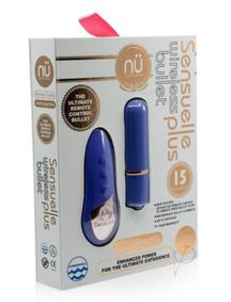 The Nu Sensuelle Wireless Bullet is the most powerful remote-control bullet around! The 15-function mini vibrator is extremely powerful: perfect for wearing inside underwear for an extra good time. Easily change speeds with the 3-button remote-control, or hand the remote over to your partner for a shared experience. Unlike other remote-control vibrators, the Nu Sensuelle Wireless Bullet`s controller vibrates as well so your partner knows exactly what you`re feeling! Powerful bullet vibe with remote control Perfect for discreet play 15 vibration functions 3-button controls for easy speed changes Smooth silicone vibe USB rechargeable Waterproof: 100% Submersible 1 Year warranty Prop 65 compliant Phthalates Free RoHS Approved CE Approved Dimensions: Bullet Width: 0.9 in. Bullet Length: 3 in.