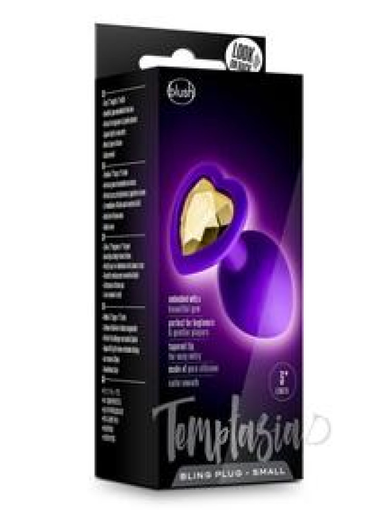 Your play just got pretty with this sweet Bling Plug! The Temptasia Bling Plug Small features a beautifully designed heart-shaped base, embedded with a golden gemstone. This beginner-friendly Bling Plug has a tapered tip for easy ion. The tight neck offers gentle pressure and is ideal for extended wear. Or show your bling during your regular erotic play! For the best experience, use with your favorite quality water-based lubricant. Made of platinum cured silicone, Temptasia Bling Plugs are body safe and easy to clean.