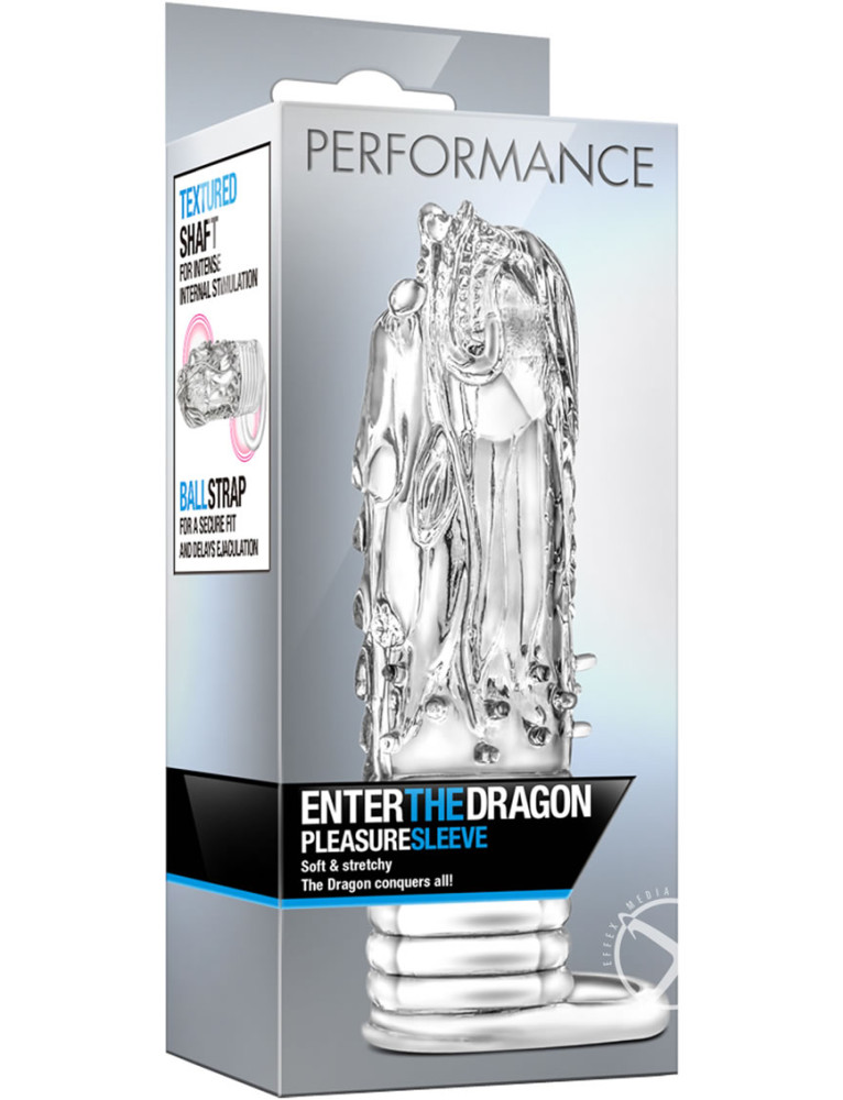 Slip this freaky sleeve over your tool for an unforgettable experience. The head and body of the dragon is meticulously hand sculpted. Ticklers on the belly of the dragon enhances sensations for your partner. Use the strap to cinch your scrotum to aid in delaying ejaculation. Made of stretchy durable elastomer. The strong stretchy material is skin safe and phthalates free. One size fits most.A Unique And Creative Ornamental Cock Sheath That Turns Your Dick Into A Fierce DragonSoft Textured Surface Stimulates Your PartnerNatural Male Enhancement - Lengthens And Thickens Your PenisFeatures A Ball Strap That Wraps Behind Your Scrotum So Sleeve Stays Securely FastenedMeasures 5.25 length x 1.5 width. Stretchy To Accommodate Most. NOTE This Product Is Not Designed To Cover Your Entire Penis