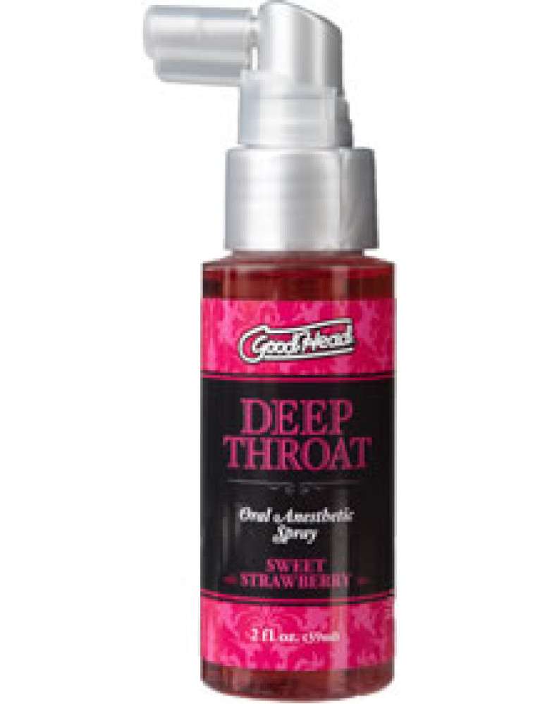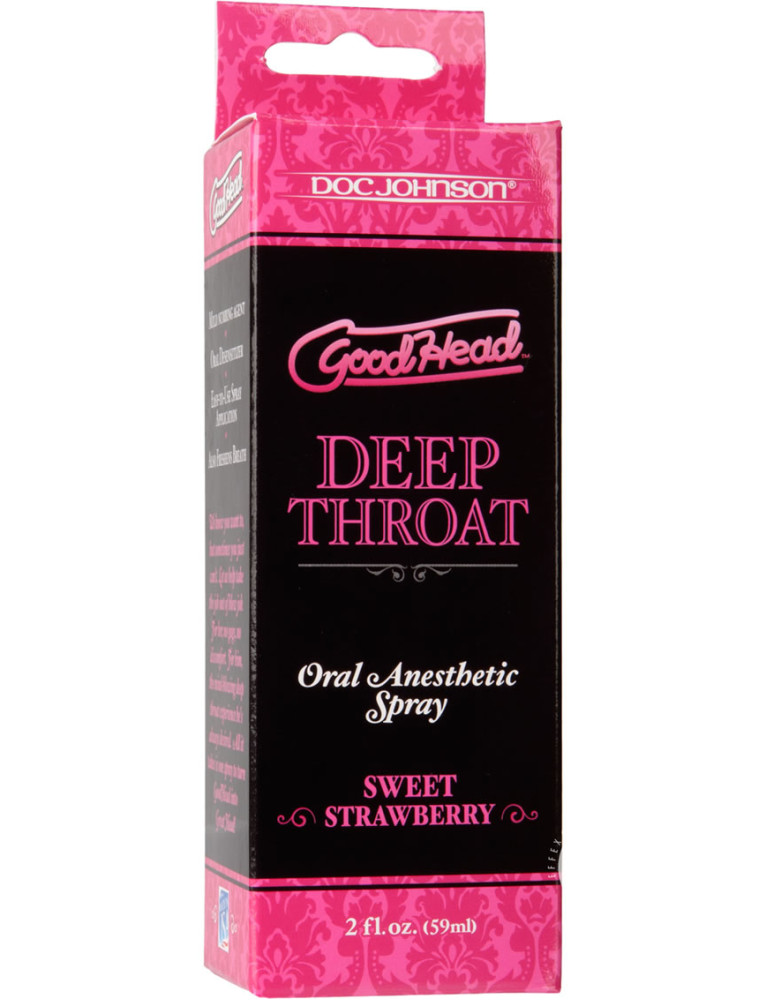 Everyone loves good head, but many people find it difficult to accommodate their partner`s full manhood. Doc Johnson presents GoodHead Deep Throat Spray, a delicious throat desensitizer that will help to alleviate your gag reflex during oral sex, turning good head into great head. Delicious and functional. What more could your partner want in an oral sex aide? Available in 4 delightful flavors: Mystical Mint, Sexy Cinnamon, Sweet Strawberry, and Wild Cherry. 2 oz. bottle. Proudly Made in America.
