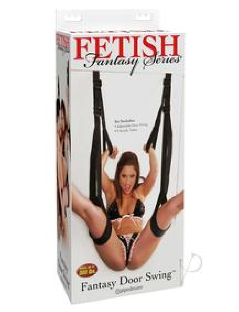 Turn any door into a love swing in just a few minutes! Enjoy positions you never thought were possible and explore your fetish fantasies! Using the door swing is easy:1. Drape acrylic tubes over the top of the open door.2. Close and lock the door.3. Lower leg straps so that your lover can slide their thighs through the lower loops.4. Allow your lover to slide their arms through the upper loops, have them hold onto the handles for extra safety. Adjust the straps to a comfortable height.5. Have fun!
