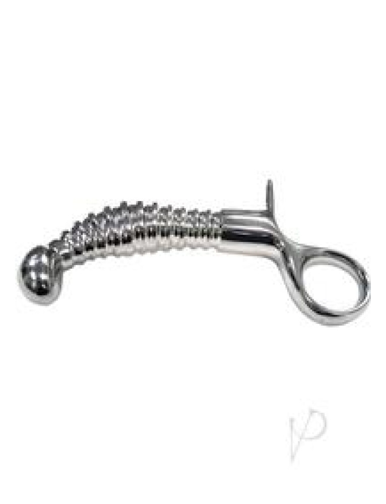 Anal Ribbed Handle plug.The stainless steel anal probe measures 4 inches in length and 1 inch wide (at the widest point). The ribbed shaft for added stimulation.The polished surgical stainless steel finish looks as good as it feels; the head is ribbed for easy ion for added extra pleasure and providing extra stimulation all the way around.Weight 316g. Graduating diameters Curved end for safety and frenulum stimulation Available in Blister package for better protection.
